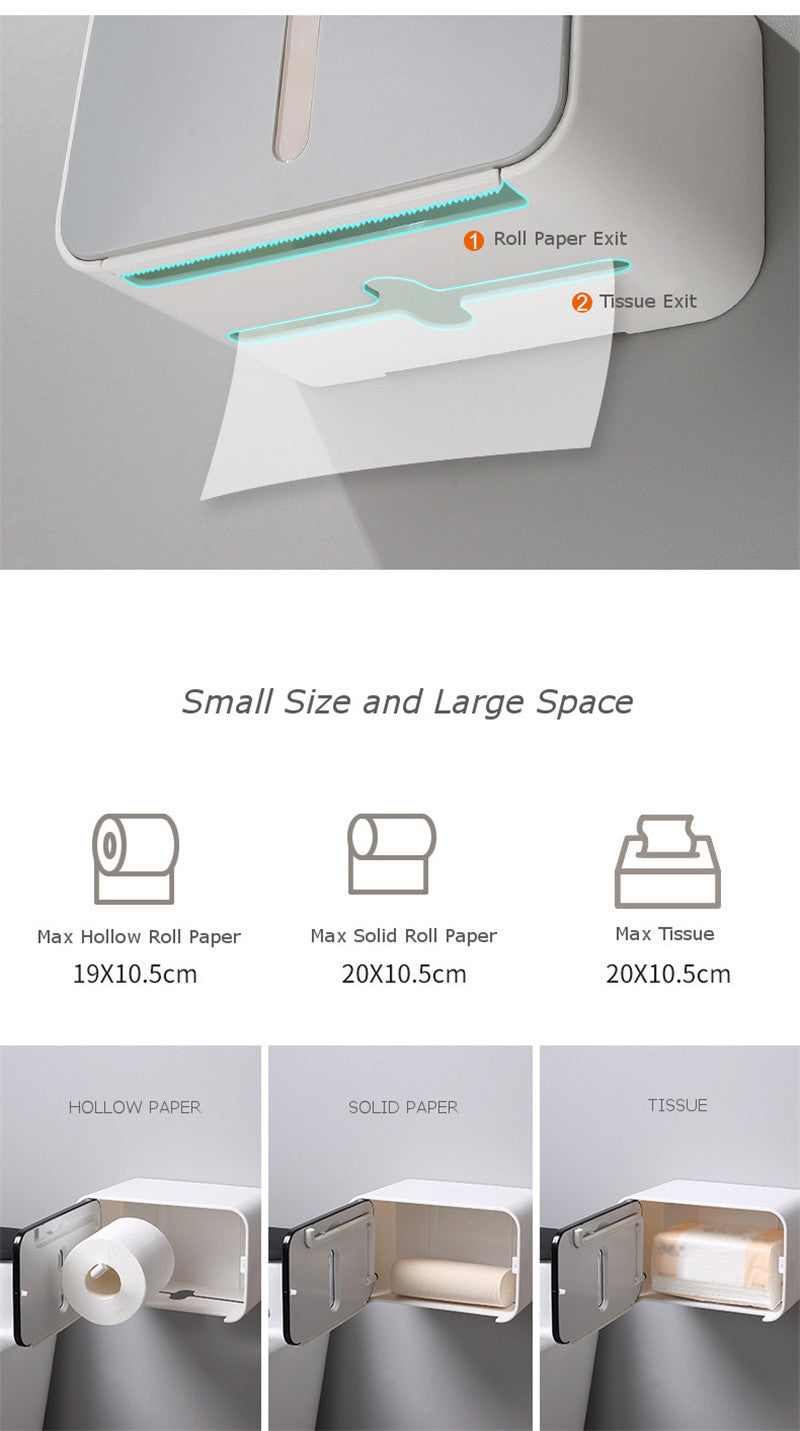 A waterproof wall-mounted toilet paper holder with modern design—perfect for homes, hotels, and commercial facilities.